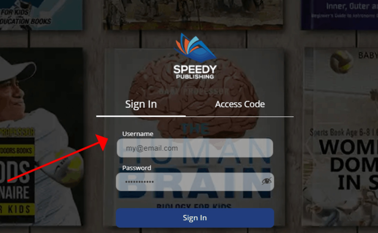 Start by logging into the Reader. Navigate to the Speedy Publishing Online and enter your username and password.